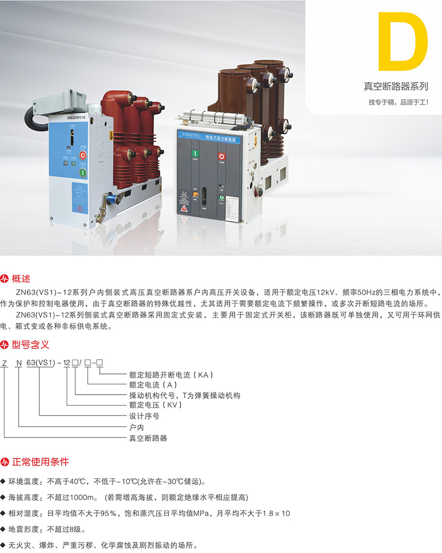 ZN63(VS1)-12侧装式户内高压真空断路器