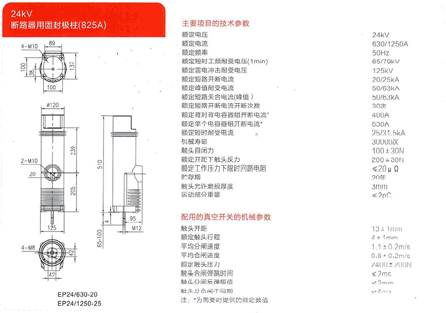 24kV断路器用固封极柱(825A)