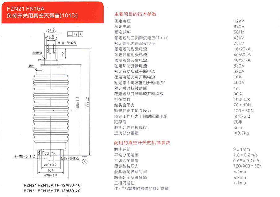 FZN21 FN16A负荷开关用真空灭弧室(101D)