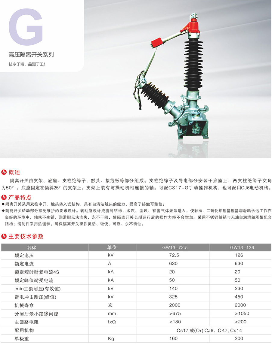 GW13-40.5/72.5/126kV中性点高压隔离开关