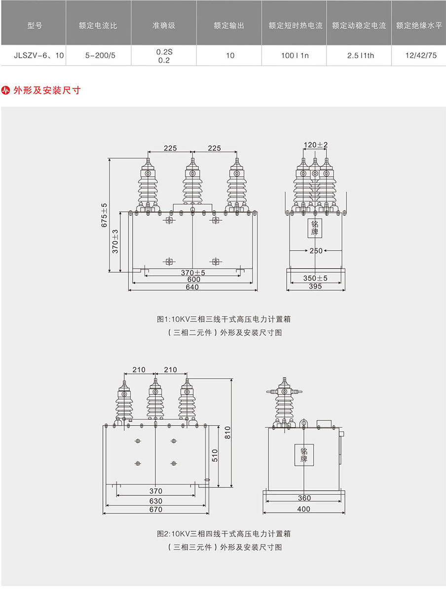 JLSZV-10/6/3三相三线制干式计量箱(整体浇注式)