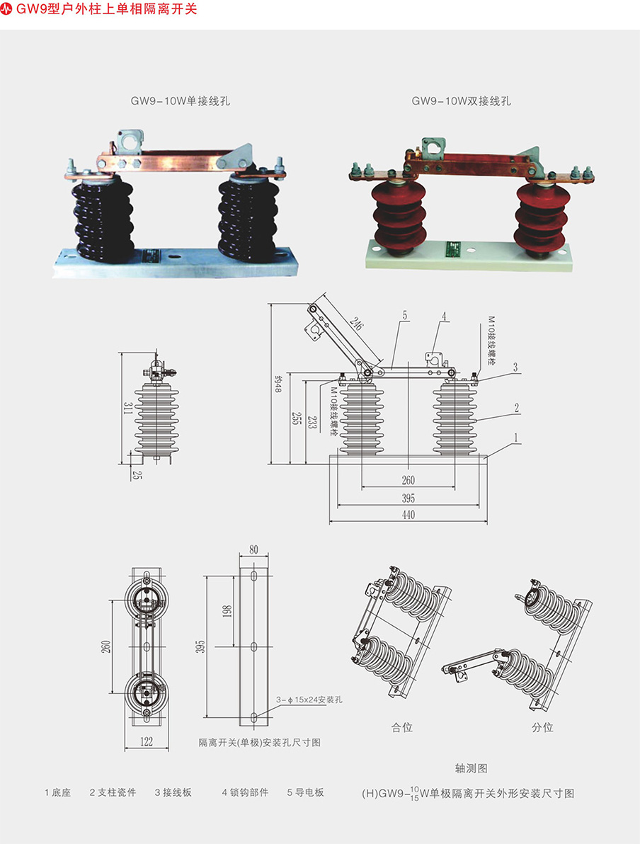 (H)GW9-10/200.400.630.1250A户外高压隔离开关