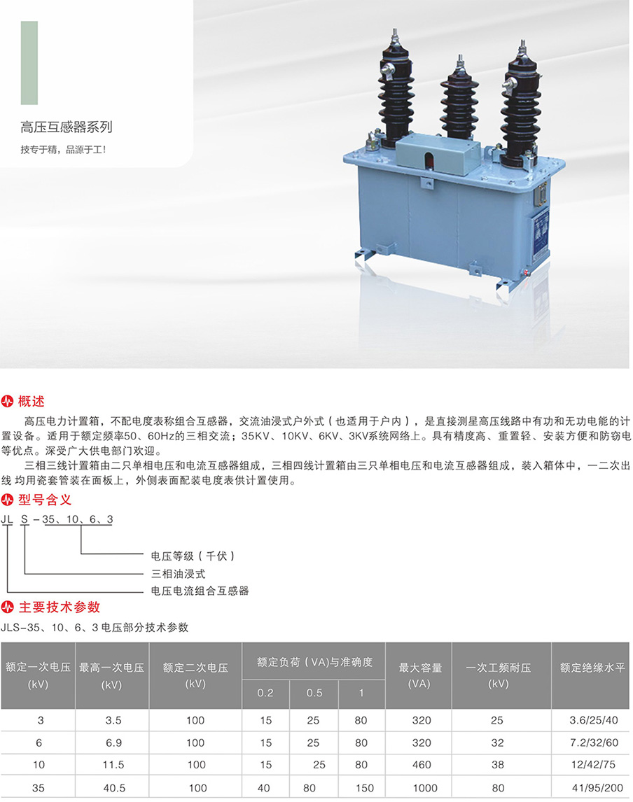 JLS-35/10/6/3 JL53-10/6/3高压计量箱(组合互感器)的油浸式系列